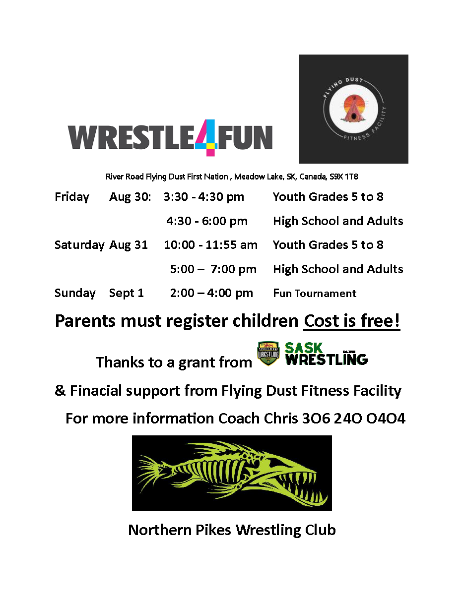 Wrestle 4 Fun Camp August 29, 2024 | No Comments Wrestle 4 Fun Camp All day August 30, 2024 – September 1, 2024 View full calendar